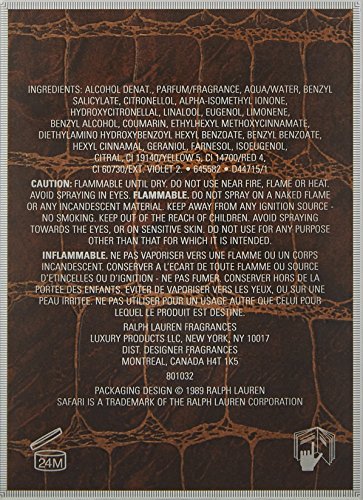 Safari for Women is a refreshing, gentle, floral fragrance that was launched by Ralph Lauren in 1990. It is top notes of blackcurrant, orange and jasmine, middle notes of orris and rose and base notes of sandalwood, cedar wood and vetiver.