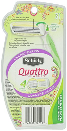 INDICATIONS: Schick Quattro For Women High Performance Disposable Razors, Sensitive Skin 4 - Ultra thin blades for an incredibly close shave. Large moisture strip enriched with Shea Butter.