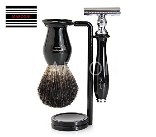 Contents: 1 x De safety Shaving Razor 1 x Badger Shaving Brush 1 x shaving Mug 1 x shaving soap 1 x Brush and razor Holder/Stand