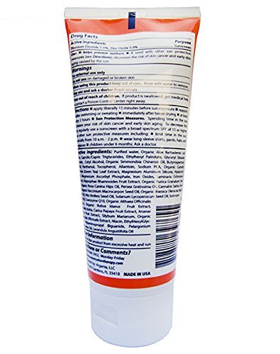 Exposure to ultraviolet light, UVA or UVB, from sunlight accounts for 90% of the symptoms of premature skin aging including wrinkles. It is important not to strip or dry skin but to gently exfoliate and remove impurities, excess oil and dead skin cells. Skin must be hydrated and toned to bring back balance and radiance. That's where our new totally natural Sun*Si'Belle moisturizing sunscreen comes in. Water resistant 80 min, non-greasy unique formula provides chemical-free mineral UVA (aging) and UVB (burning) Broad Spectrum Sunscreen SPF 30, which protects skin from harmful sun rays and prevents sun damage and pigmentation. Fruit extracts of Pineapple and Papaya provide mild exfoliation to shed dead skin cells and keep your skin fresh with rosy glow. Sea Kelp provides hydration to your skin all day long. Ellagic acid, an antioxidant found in raspberries and cranberries, protects against ultraviolet damage by blocking production of matrix metalloproteinase enzymes that break down collagen. Highly nutritive Tomato is a rich source of Antioxidants like Tocopherols (Vitamin E), Lycopene, Omega 3,6,9, Copper, Iron, Manganese and Zinc, are essential for treatment and prevention of cutaneous signs of aging, and for reducing UV damage to the skin. Activities that make you sweat, such as outdoor jobs (gardeners, construction workers), outdoor sports (tennis) or exercise, prolonged sunbathing, or water sports such as swimming, water-skiing, or wind surfing, may result in the removal of the sunscreen agent from the skin. Re-apply as needed, every 2-3 hours recommended. When possible, also wear a hat, long-sleeved shirt, long pants, and UV-opaque sunglasses.