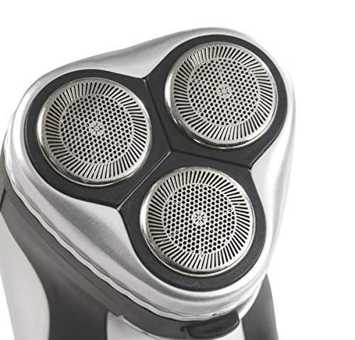 Cordless design mens shaving kit from Signature. Rechargeable triple head shaver with nose and ear hair trimmer. Sideburn trimmer accessory