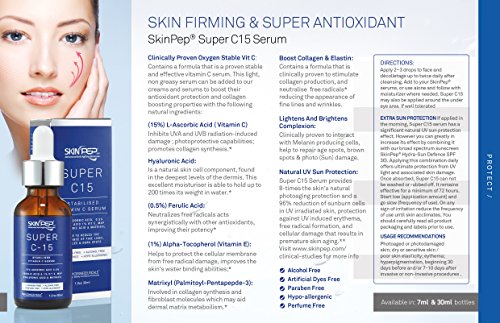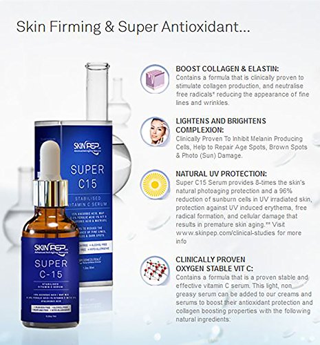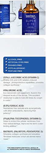 SkinPep Super C15 Serum 30ml - Vitamin C Serum + Hyaluronic Acid + 15% Ascorbic Acid + Hypo-Allergenic - Helps To Reduce the Appearance Of Fine Lines, Wrinkles And Dark Spots - SkinPep Best Choice For Premium Quality Vitamin C Serum is available in Serums & Fluids