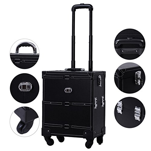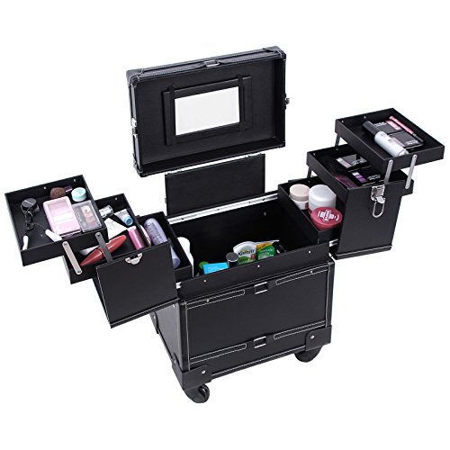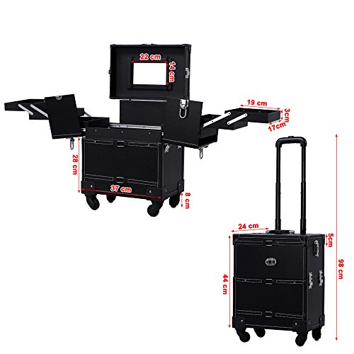 Songmics Large Beauty Nail art Storage Tool Kit Trolley Black 4 Universal Wheels JHZ02H is available in Make-up Pouches