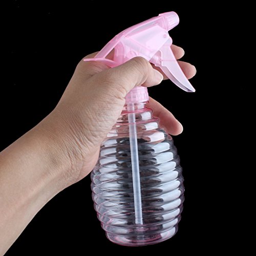 Plastic Pink Hair Care Salon Water Mist Trigger Spray Bottle 470ml Capacity (here is empty is the package). Utility Hair Care Spray Bottle specifically designed for all types of hair care / body use. Salon Water Bottle is ideal to moisten or wet hair during cutting. Moulded bottle polycarbonate impact resistant and won't transfere smells and tastes to the liquid it holds. Can be adjusted to provide fine spray or a straight stream of fluid. Fine Spray projects. Easy unscrew to refill.