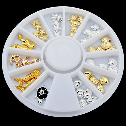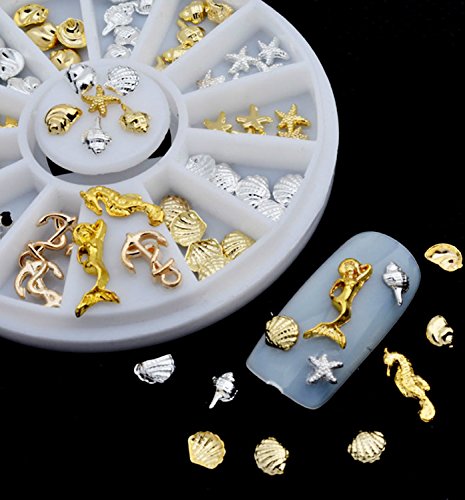 Sea Style Shell Starfish Mix Design Alloy Nail Art Rhinestone Studs Decoration Wheel Set DIY Beauty Charm Nail Tools is available in Nail Tips, Nail Art Sets