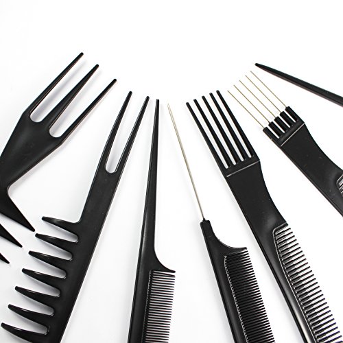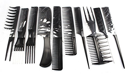 This set of 10 Combs is ideal for all types of hair styling, from teasing, lifting, detangling, cutting etc. High Quality combs Each comb has its own styling ability Packaged in a neat plastic wallet Made from high quality Plastic .