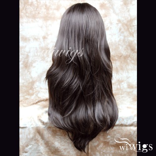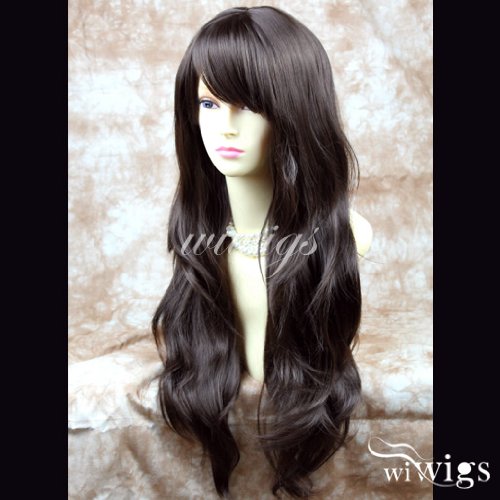 Stunning XXX Long Wavy Dark Coffee Brown Ladies Wigs Skin top BANGS Wig UK is available in Wigs