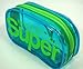 Clear blue bag by Superdry with neon green branded printing and a chunky neon green zip and branded embossed zip pull. Dimensions 19 x 10 x 6cm.