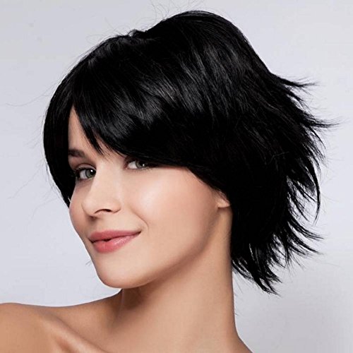 THZ Natural Women's short Dark Black Straight Heat resistant Cosplay Full Hair Wigs is available in Wigs