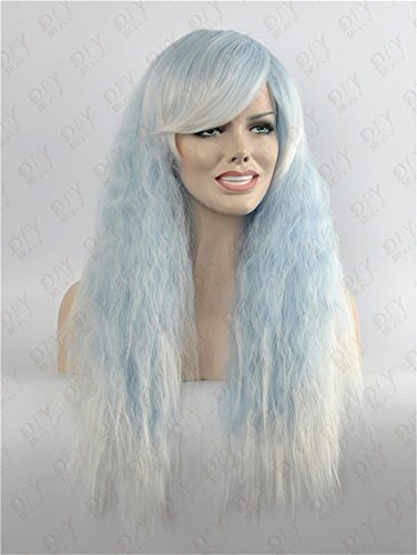 THZ Curly Heat resist Soft -touch Hair Bangs Women's Mixed Blue and White Cosplay Wigs is available in Wigs