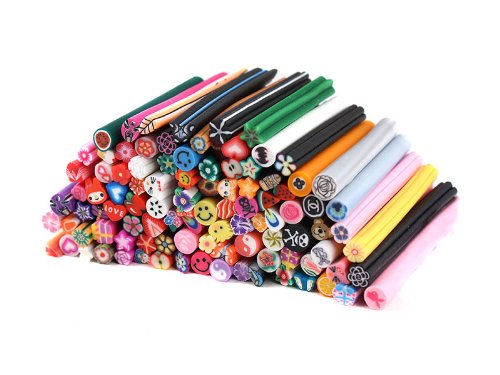 TOOGOO(R) 100pcs 3D Cute Designs Nail Art Fimo Canes Sticks Stickers Rods Gel Tips Manicure Decoration + Blade is available in False Nails & Accessories