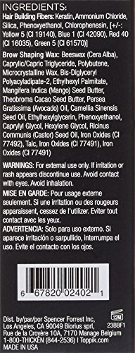 The Toppik Eye Brow Building Fibres Set makes even the thinnest eyebrows instantly thick, full and natural-looking. Brow Building Fibres last longer than eyebrow powder and look more natural than eyebrow pencils or gels. This 3-piece kit includes a brow wax to shape eyebrows, Brow Building Fibres and a custom dual-end brush for wax and Fibres application, making this the best eyebrow makeup for full, natural-looking brows. The Toppik Brow Building Fibres Set has 3 key components: 1 - Brow Conditioning Wax sets and defines the shape of your natural brows 2 - Brow Building Fibres adhere to brows, fill in patchiness, and give brows long-lasting thickness and colour 3 - The Dual-End Brush ensures simple and precise application Available in 3 versatile shades that work with nearly all brow colors. Brow Conditioning Wax is made with nourishing Mango, Shea and Cocoa Butters to condition the skin and brow follicles. Avocado and Jojoba Oils also add moisture and help tame unruly brows. Brow Building Fibres are made of colored keratin protein, the same type of protein that is found in your hair. They have a natural static charge that binds the Brow Building Fibres to your hair, creating a completely natural look and feel.