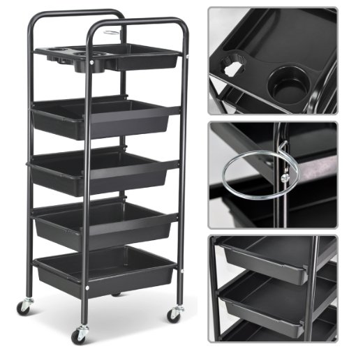5 DRAWER BLACK TROLLEY SALON HAIR DRESSING PARLOUR KITCHEN BATHROOM STORAGE UNIT is available in Maintenance Carts