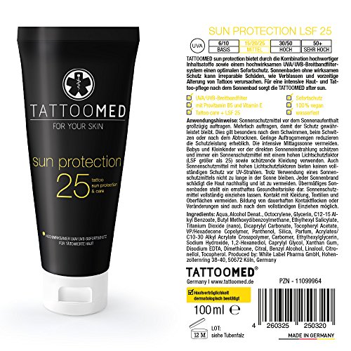 Verified Purchase This review is from: TattooMed Sun Protection FPS25 - Sun Cream For Protecting Sensitive Tattoos from Solar Radiation - (1 x 100ml) (Personal Care)