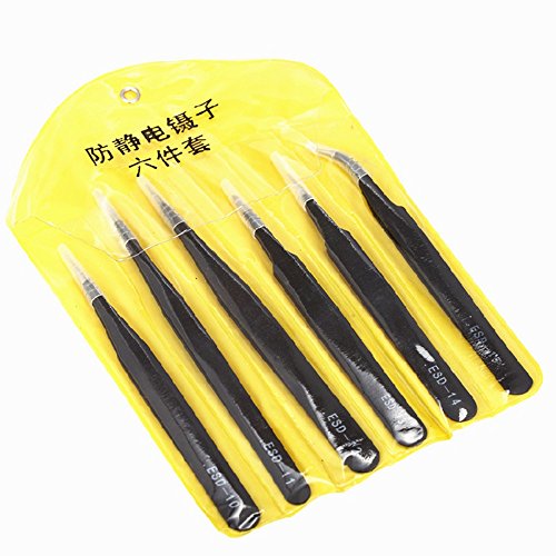 Teenxful 6pcs ESD Anti-Static Stainless Steel Tweezer Set Tweezers Maintenance Tools Kits Set is available in Tweezers