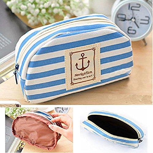 Teenxful Stripe Pencil Case Pouch Purse Cosmetic Makeup Bag Storage Student Stationery Zipper Wallet, Navy Blue is available in Cases & Holders