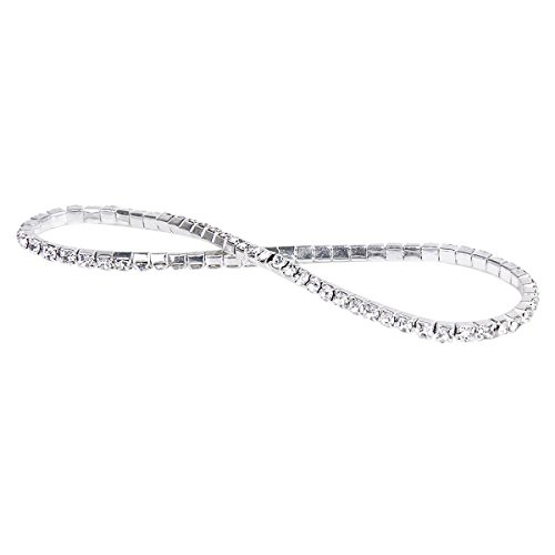 1 * Elastic Rhinestone Decorated Women's Girls Metal Anklet Ankle Bracelet Chain (Silver)