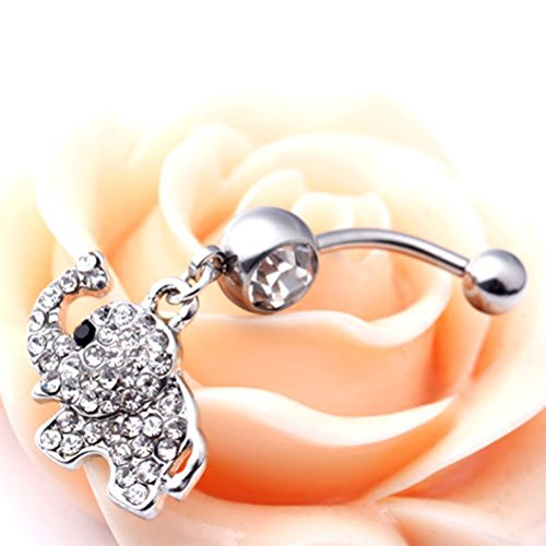 This item is a navel stud, which is made of hard stainless steel decored by fine rhinestone. Cute elephant shape makes it more attracting. It is very popular and wonderful gift among women and girls. Nice and practical navel ring for choice.
