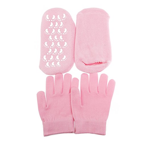 1 * Spa Gel Socks and Gloves Set Soften Whitening Moisturizing Treatment Skincare Socks and Gloves Set - Free Size (Pink)