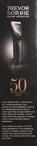 The Trevor Sorbie Stay Sharp Titanium and Ceramic Professional Hair Clipper, creates a smooth and effortless precision cut, even through longer hair, time after time. The professional high power motor and cordless design means you can easily use these clippers around the house or when you're on the go, with a full hour of use per charge. The LED display also lets you know the battery level is low to ensure you never run out of power. The five fine adjustment levels range from 0.8 to 2 mm so you can tailor it to suit your style, with an easy-to-use rotating dial. There's also a four position detachable comb with lengths ranging from 3 to 12 mm for added versatility. This set comes with a barbering hair comb, along with lubricating oil and a brush to keep the blades sharp and clean. Features: • Stay sharp titanium+ ceramic blades • Professional high power motor • Mains/rechargeable operation • 5 Fine adjustment levels - 0.8 to 2.0 mm using rotating dial • 4-position detachable comb: 3, 6, 9 and 12mm • 90 minutes full charge time for one hour use • LED digital display Shows charging status • Add oil indicator • Ergonomic design for of use • Quiet operation motor • Includes barbering hair comb • Includes lubricating oil and brush for cleaning blades •Trevor Sorbie Professional Hair Clippers