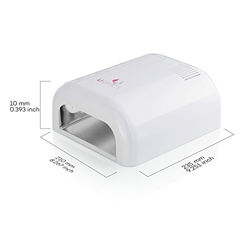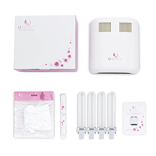 This USpicy MACRON 36W Nail Dryer is your one-stop answer to perfect DIY nail beauty. The four LED tubes dry your nails instantly and beautifully. With the intelligent timer that automatically times each session, it does its trick needing no extra attention. With a pair of UV gloves and sanding file to protect your hand from UV harm and trims your nails before and afterwards. Use this portable manicure dryer to cure a heavy coat on a fancy manicure or a final touch to a delicate pedicure. With the USpicy nail dryer, you are on step closer from having your very own nail salon in your home. Just plug in, press the button, and you are all set..
