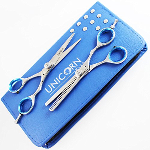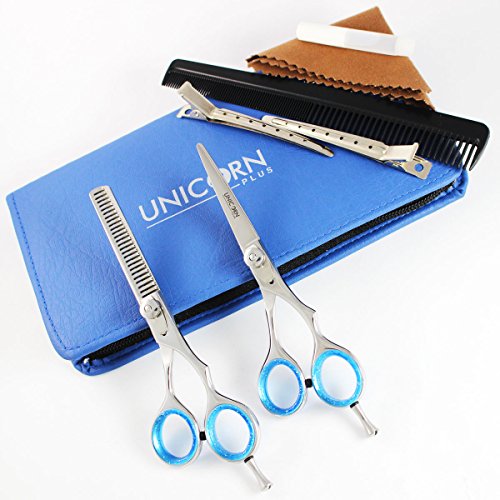 Unicorn Plus Scissors - 5.5" Professional Hairdressing Scissors Set - Mirror Finish - Japanese Hair Cutting and Thinning Scissors Shears Plus Get 2 Free Barber Hair Clips @ Knock Off Price is available in Scissors