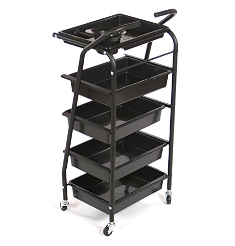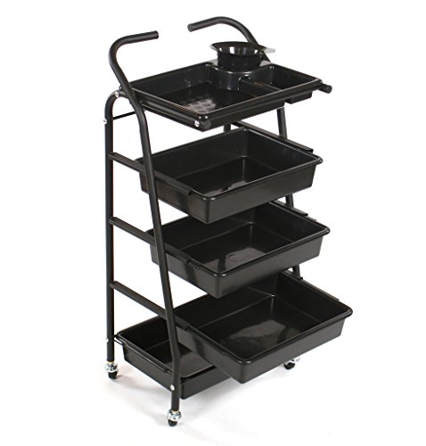 With its strong swivel wheels and convenient handles, this black hairdressing trolley can be wheeled around salons effortlessly, making it very user-friendly.