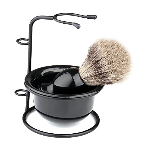 VERY100 Badger Shaving Brush + Metal Razor Holder Stand + Arcylic Bowl Mug Set is available in Sets