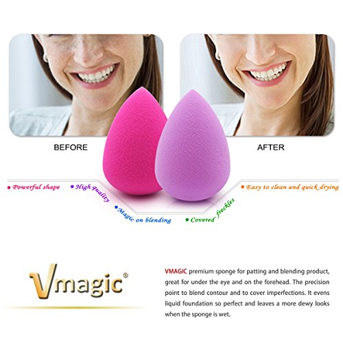 VMAGIC 2Pcs Premium Pro Makeup Sponges Beauty Sponge Blender for Flawless, Applicator, Highlight and Foundation (Purple + Pink) is available in Sponges