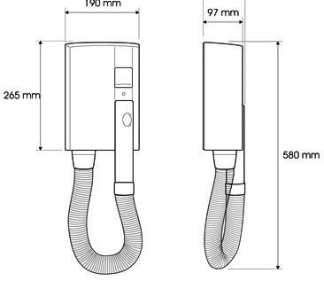 This range has been specifically designed for hotel bathroom areas and other situations where conventional hair dryers are not permitted.