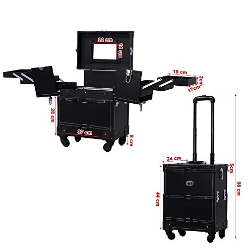 New Vanity Trolley case, vanity case, cosmetic case with mirror 51 X 37 X 24 cm (black) is available in Cases & Holders