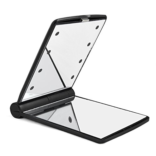 Veroda 8 LED Light Compact Cosmetic Pocket Mirror Color Black Foldable Double-sided is available in Hand Mirrors