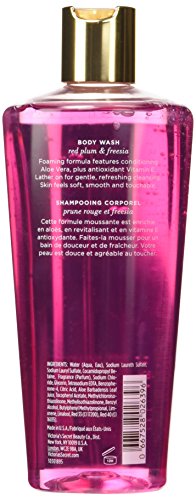 A luxurious exfoliating body wash from Victoria's Secret. Forming a cleansing foam fortified with aloe vera and vitamin E that leaves skin smooth and supple. Loaded with fragrance, this shower gel mixes ardent red plum and the softer and sweet freesia. To use: Work into a lather before massaging across entire body. Rinse thoroughly