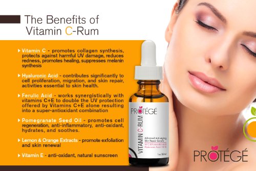 Contains 20% Ascorbic Acid and Hyaluronic Acid. This Combination is the Most Effective and Is Easiest for Your Skin to Absorb. Plus, we Added Vitamin E, Ferulic Acid, and Antioxidants to make Vitamin C-RUM Stronger, More Powerful, and to Provide More Protection for Your Face than All Other Vitamin C Serums.