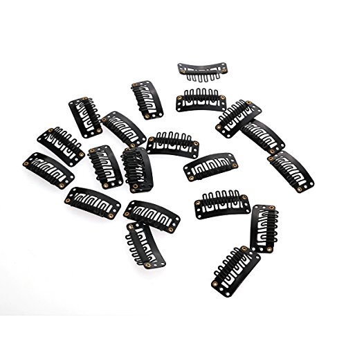1 * Set of 20pcs 6-Teeth Snap-Comb Wig Clips with Rubber for Hair Extension (Black)