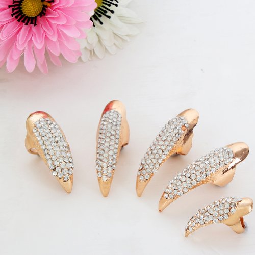 Verified Purchase This review is from: WLM 5pcs False Nail Clear Rhinestone Claw Paw Talon Finger Ring (Misc.)