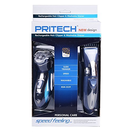 Pritech - RSM-2539 - Waterproof Rechargeable Electric Shaver - 3 Swivel heads Trimmer + - Wireless - Color gray - 716 --- Description: A perfect shave with the shaver 3 heads PRITECH! 3 swivel heads, waterproof, washable and easy to clean. Rechargeable, charging 8H, 40min autonomy, comes with its soft chargeur. It attacks the hair in all directions. 3 floating heads align the blades against the skin for a better shave. This kit also includes a trimmer for unsurpassed cutting accuracy! --- Features Electric shaver 3 heads: - floating triple heads individually - waterproof - Dry Shaver Wet - 8h 3h charging or fast charging - 40min Battery - Charger and external load indicator - 1 storage bag + 1 cleaning brush - Double ring and ultra thin sections - alloy motor AG-Palladium - Voltage: 220-240v 50Hz 3W --- Features Electric Trimmer: - 1 Charger - 1 stand - 1 cleaning brush - 1 dosing of Oil - Blades ceramic and titanium - Adjustable blade - Cutting length from 4 to 16mm - 2 x 1000mAh rechargeable battery - comfortable handles - washable under water