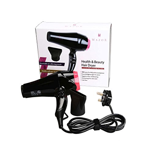 Wazor Powerful AC Motor Hair Dryer Professional Longlife Negative Ions Blow Dryer 2 Speed and 3 Heat Settings Removable Inlet Grille 220-240V Safe UK Plug is available in Hair Dryers & Accessories