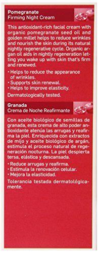 This antioxidant care is the ideal companion to the skins natural aging process. Containing precious ingredients from organically grown pomegranate and golden millet, it reduces wrinkles, tautens the skin and reactivates its regeneration. The delicate fragrance will inspire all the senses. This firming night cream works to reduce wrinkles, aids active cell renewal and improves elasticity.
