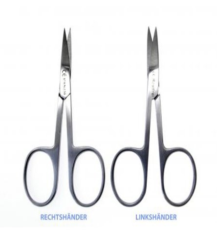 NEW LEFT HANDED SKNI SCISSORS : Compared to right-handed scissors the cutting legs are reversed mounted, so that the cutting surface is closer to the cut skin. Accurate cutting for left-handers is made possible. Extra hardened cutting jaws for longest shelf life and safe operation - 9 inches total length - 2 cm cutting edge. Slightly curved for anatomic guidance. NAIL SCISSORS LEFT HANDED: - 3.5 inches ( 9 cm) total length - 0.8 (2 cm) cutting edge - hardened cutting edges for durable life and great sharpness. THE LEFT HAND SET !