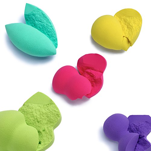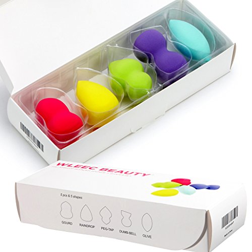 Wleec Beauty Blender Sponge is Made from a Latex-Free, Non-Allergenic, Non-Flaky and Odor free, 5 PCS Multi-Functional Shapes: Gourd, Raindrop, PEG-TAP, DUMB-Bell, Olive.