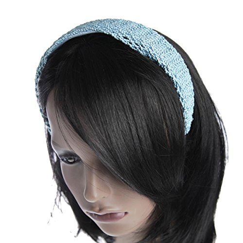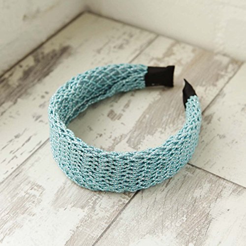 Women Vintage Mesh Glitter Plait Wide Plain Hair Aliceband, Sky Blue is available in Headbands