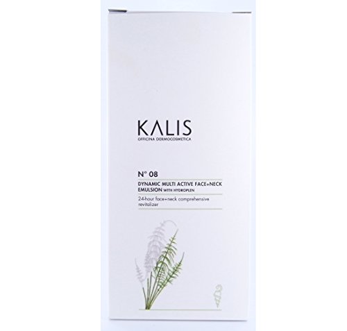 Kalis No 8 natural Dynamic multi-active face and neck decollete cream treatment with vitamin c, shea butter and hyaluronic acid 50ml. Vegan Italian skincare. With UV spf sun protection is available in Neck & Decollete
