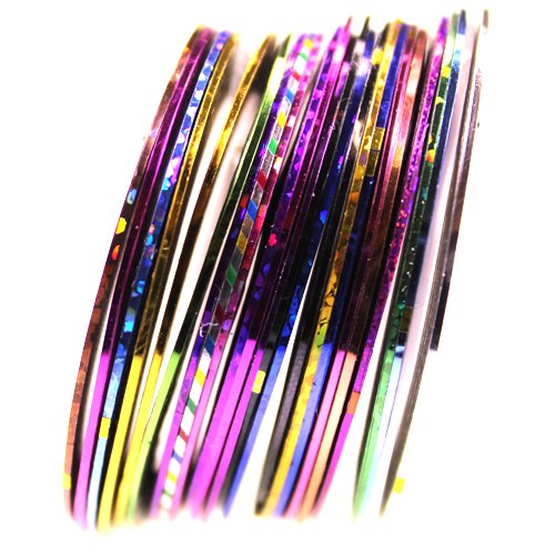 Dazzle everyone you meet with stunning nail art that looks like it was created by a professional! Get creative the 12 high quality nail polishes with 30 vibrant coloured and patterned nail tape and 12 sparkly glitter pots! Experiment with unique combinations or add other accents for a real stand out finish. Self-adhesive backing tape requires no glue and is easy to clean when removed.