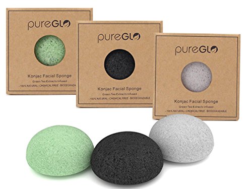 pureGLO Purest Konjac Facial Sponge (Charcoal)- 100% Natural and Chemical Free - Gentle Deep Cleansing and Exfoliation - Great for Sensitive, Oily, Combination and Acne Pores Skin is available in Sponges