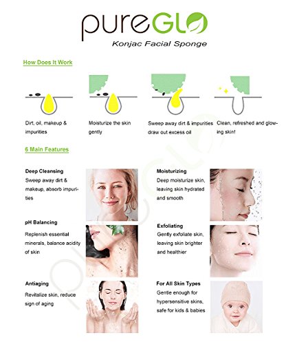 - Safety: our pureGLO Konjac Facial Sponge gently removes dirt and make-up from the skin without any irritation. It is better than any normal wash cloth, loofah or pouf.