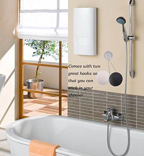 This is the first time I've seen a Green Tea variety of Konjac sponge. This one contains Green Tea Powder which is ideal for use on problem skin as it is a natural antibacterial. What gives this sponge the advantage over the others is that it has 2 hooks included so I can hang it up after use, I've never seen these included with the sponges before and it is so much nicer to hang my sponge up rather than just leaving it on the side of the bath. It is also lower in price than other Konjac sponges I have purchased online.