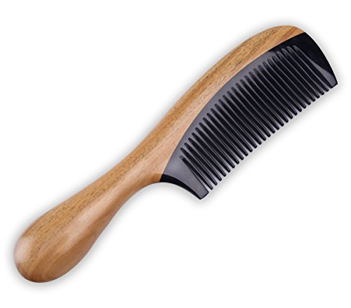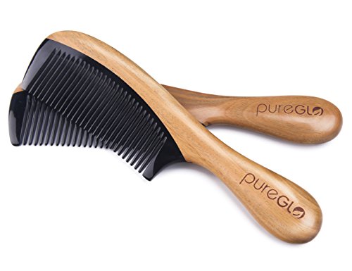 pureGLO Green Sandalwood Hair Comb | No Static Detangling Natural Aroma Handmade Buffalo Horn Comb | Free Premium Giftbox is available in Combs