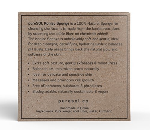 pureSOL Konjac Sponge - Turmeric - Facial Sponge, Natural Sponge, Eco-Friendly - Gentle Exfoliating Sponge, Deep Cleansing, Improved Skin Texture - Konjac Facial Cleansing Sponge is available in Sponges