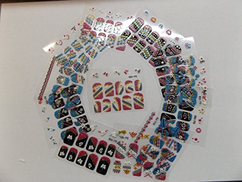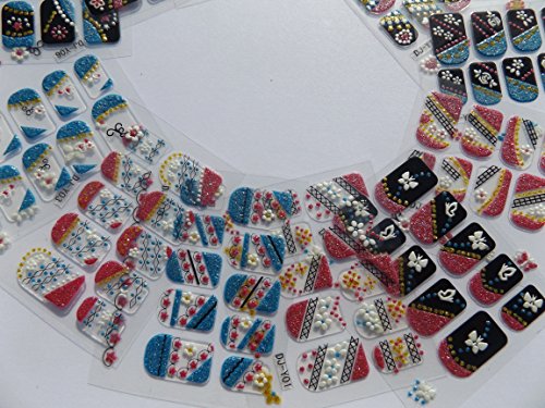 12x sheets (300+ individual transfers) of 3D Nail Art Tips Stickers False Nail Design Manicure Decals Gems Glitter Toe various designs - by Fat-catz-copy-catz (Glitter design nail art) is available in Stickers & Decals